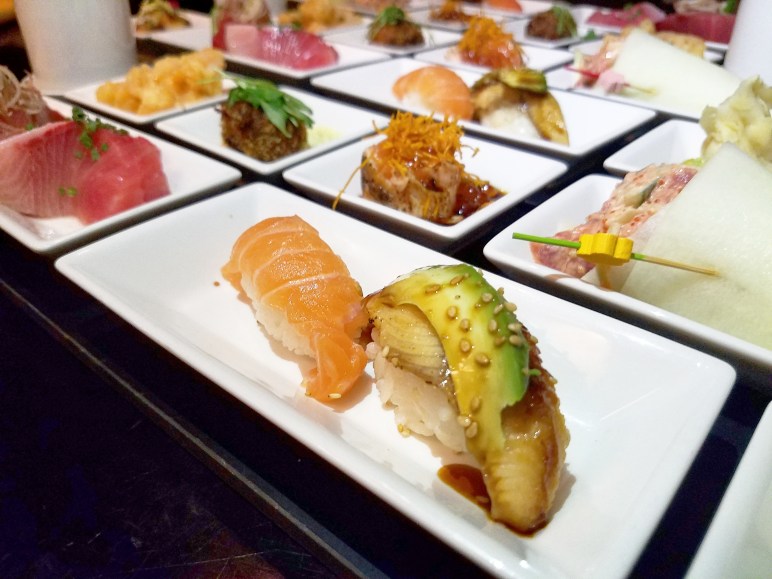 Choice C: Gyu Kaku Donburi ($20) – Miso soup & salad. Grilled beef & onions on top of rice topped with sweet garlic sauce [It tasted good, and the beef had great flavor but it was quite tough]. Icecream [We thought their green tea icecream tasted a little artificial and would prefer it if they used more matcha powder].Choice D: Kaiseki Lunch ($30) – Green salad & sesame dressing. Fresh lobster wild mushroom risotto [This was tasteless, like white rice with a little bit of sauce, and we couldn’t taste the lobster at all]. Crispy rock shrimp lemon aioli [Despite it’s name, it wasn’t crispy. It was fried way before it was served and the shrimps were too tiny]. Oishii crab cake [Not that oishii]. Seared wild king salmon with ikura. Spicy tuna salad in a cucumber handroll. Grilled miso black cod. Sake & rocky sushi. Hamachi & maguro sashimi. [The rest were pretty good, but the hot dishes were already cold by the time it was served to us.] Ice cream.Choice E: Pork Belly Ramen ($20) – Green salad & sesame dressing. Ramen noodle soup [It was quite bland and we would have preferred more pork flavour in the soup]. Pork belly. Napa cabbage. Fresh egg. Icecream
