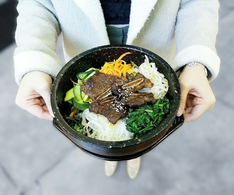 Samgyetang(ginseng chicken stew) – whole chicken stuffed with rice, ginseng, chestnut, jujube and vegetables ($15) [the soup is not seasoned and they provide salt and pepper for you to season it to your liking. I would prefer it if there’s more of a ginseng taste to it, but it’s still pretty good. If you are not used to asian-style chicken soup, you may find it to be bland.]L.A.galbi – beef ribs marinated in our secret umami-and-sweet sauce ($16) [It’s pretty average and you can find better-quality galbi in a lot of restaurants. The meat is quite chewy and the sauce is on the sweet side]